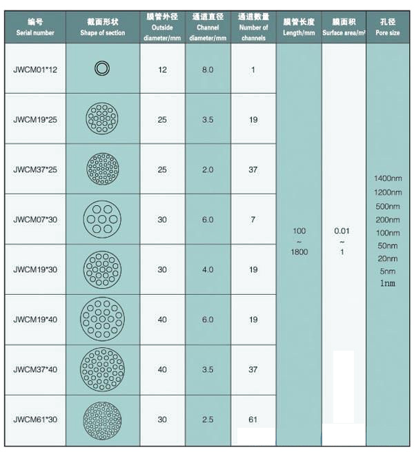 匹配膜元件(jiàn)長度直徑:100~1800mm/外徑:25、30、40mm